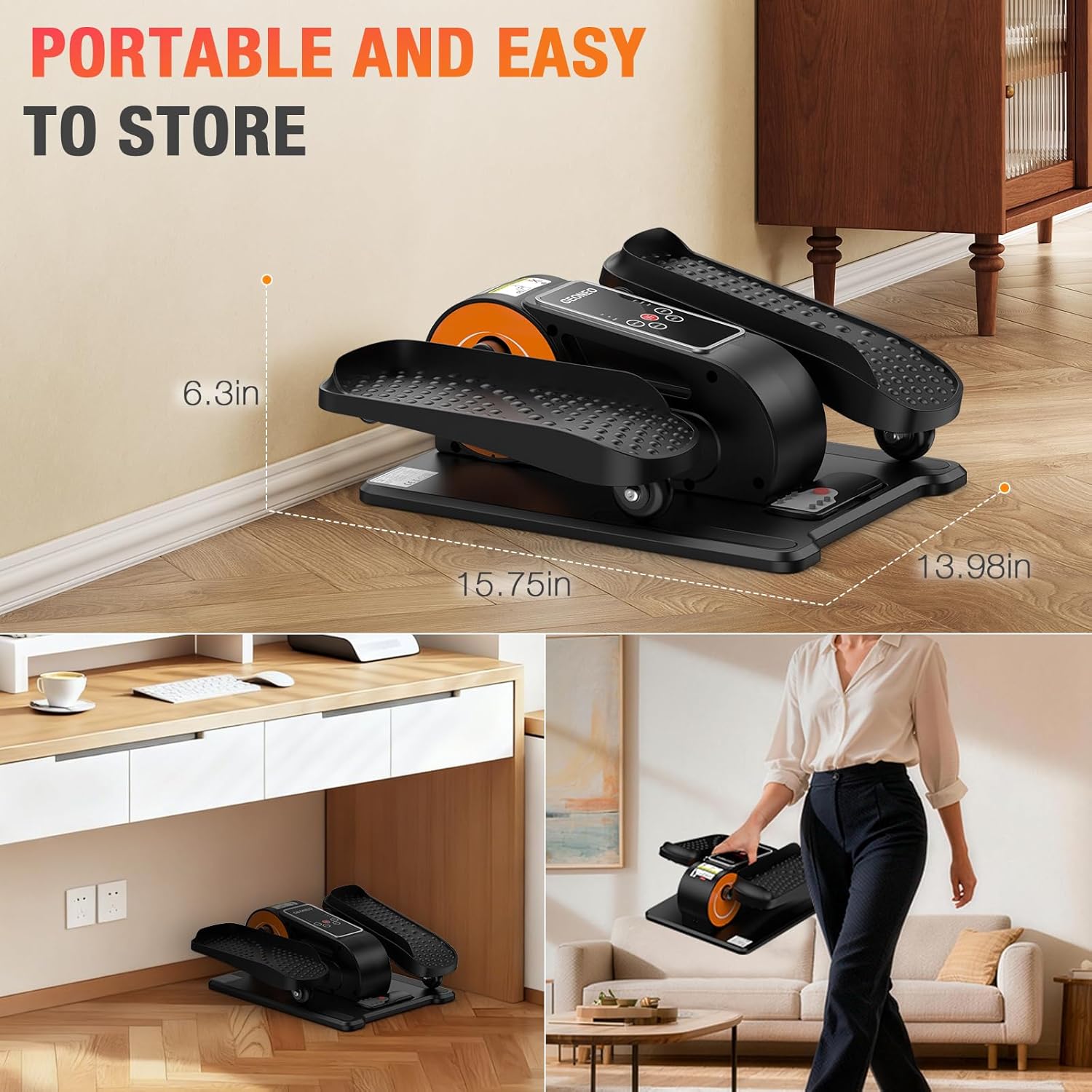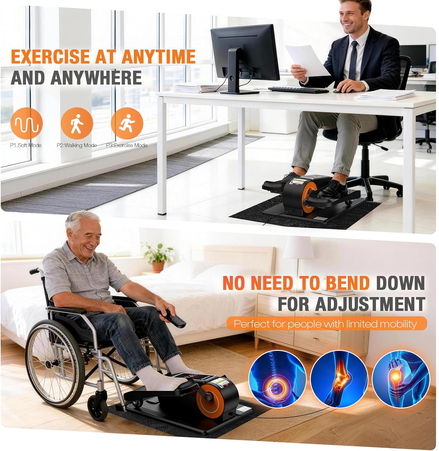 【Safe and stress-free exercise】 Low-impact exercise on this under desk elliptical machine helps stimulate circulation, burn calories, strengthen lower body muscles, enhance mobility, making it ideal for sedentary office workers and elderly. Lightweight pedal exerciser with built in groove for easy carrying, whether working, reading, or watching TV, you can do exercises anytime and anywhere